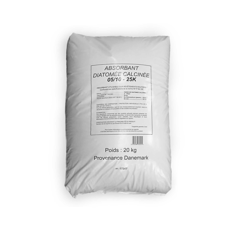 L’absorbant en terre de diatomée granulométrie 5/10 est un produit minéral naturel reconnu pour son fort pouvoir d’absorption. Issu de dépôts fossiles de microalgues siliceuses, il se présente sous forme de granulés poreux, légers et non combustibles, permettant une absorption rapide et efficace des liquides.